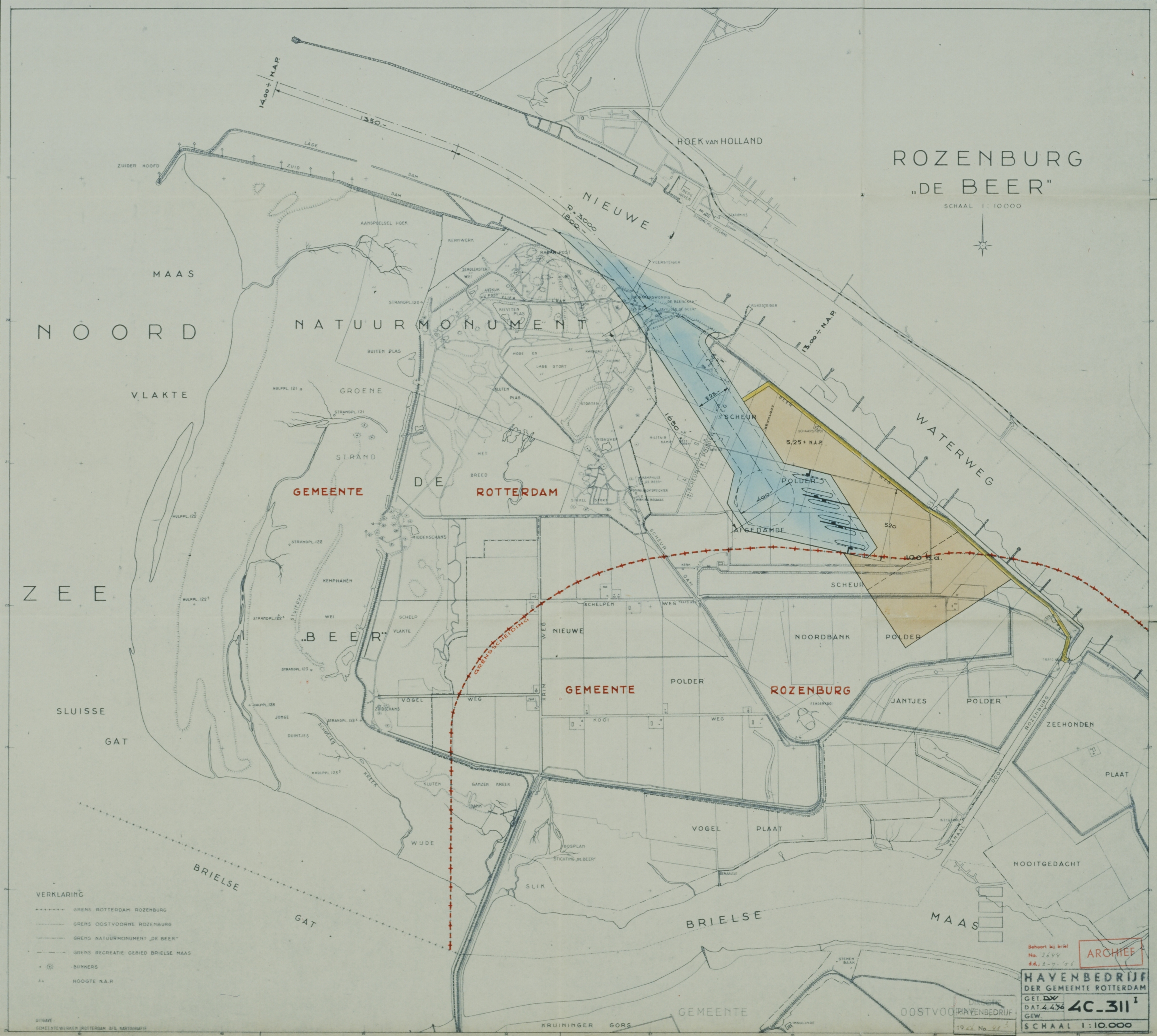 Het allereerste echte plan voor Europoort, waarschijnlijk mei 1956. Gemeentearchief Rotterdam.