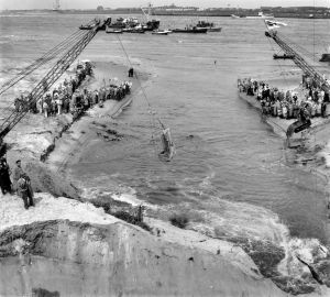 Het is zover! Een opening met de Nieuwe Waterweg, ongveer ter hoogte waar ooit het huis van opzichter Korfmaker stond. Foto Stadsarchief Rotterdam.