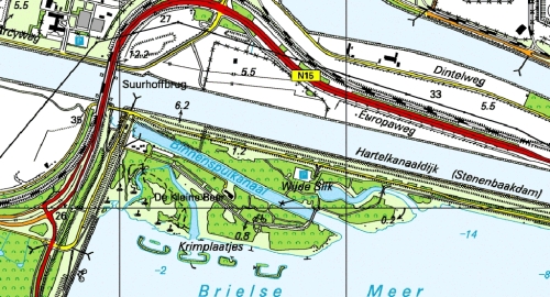 'Het terrein Kleine Beer (11 ha.) ligt ten westen van Brielle. Het vogelreservaat De Beer was voor de aanleg van de Europoort een vogelreservaat van 900 hectare. De resterende 11 hectare met moeras en hooilanden begroeid met riet, wilg, vlier en berk wordt gekoesterd. Bijzonder planten als parnassia, addertong en moeraswespenorchis kunnen zich hier handhaven. Het natuurgebied is niet toegankelijk maar is wel te overzien vanaf het fietspad langs de N218 ter hoogte van de Brielse Maasdam.'