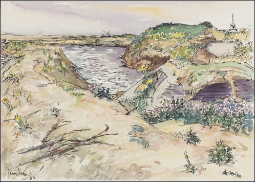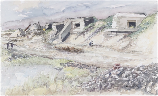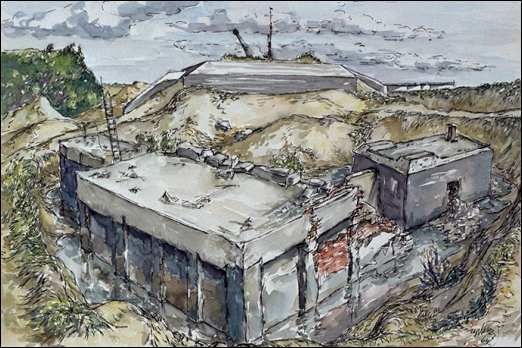 3 = Bunkers op het natuurreservaat "De Beer" aan de zijde van de Nieuwe Waterweg, aquarel, 1964