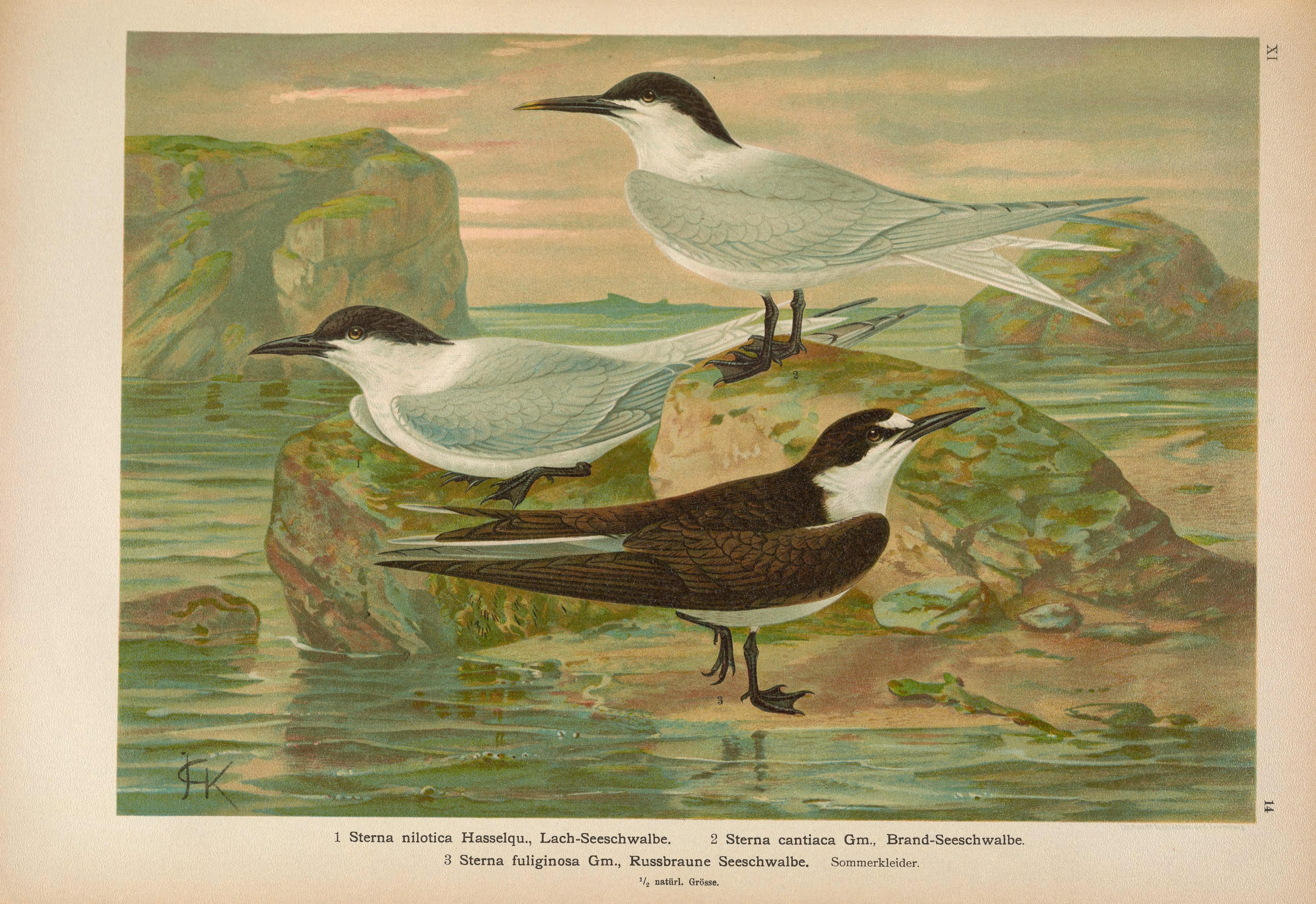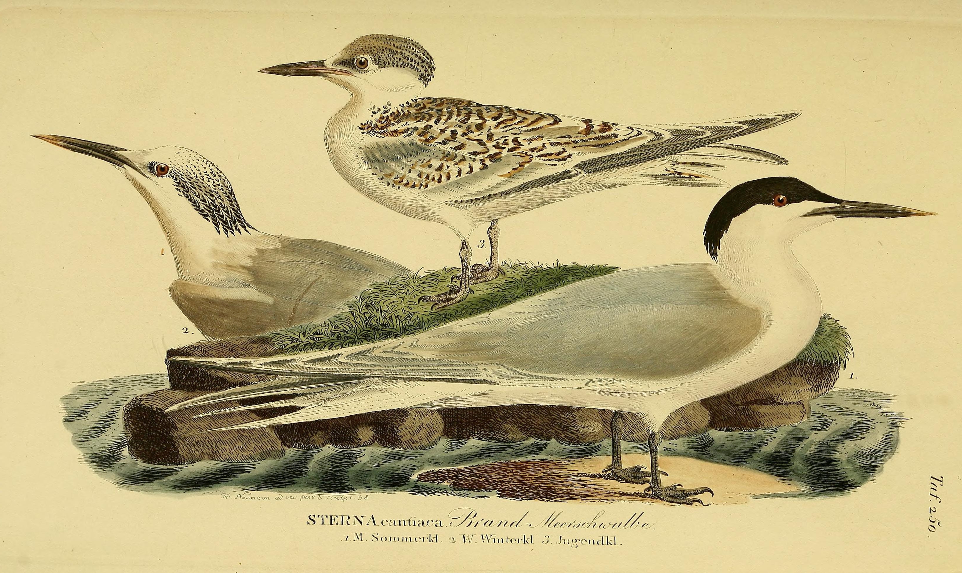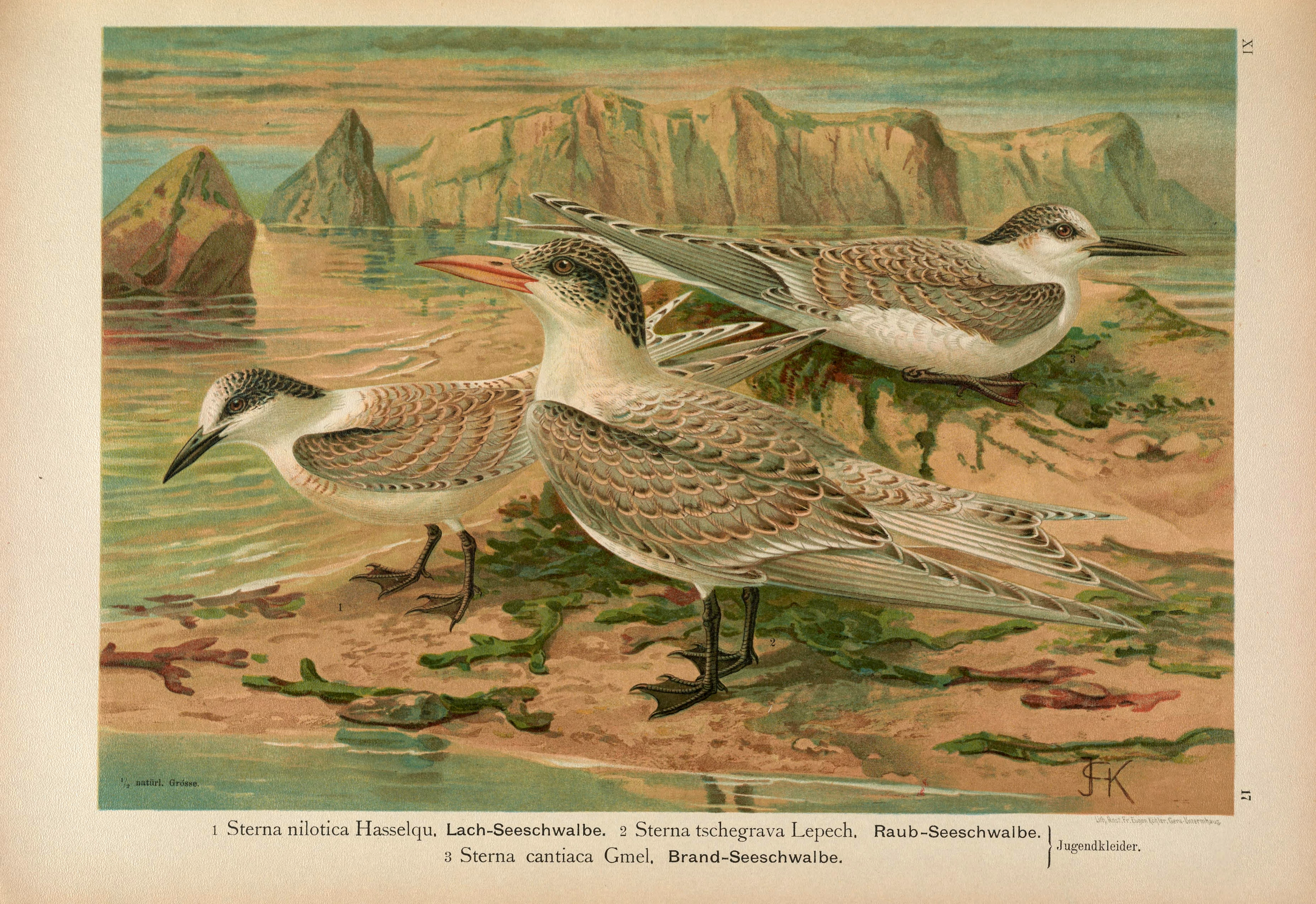 DDB), deel 31, Berlin. Origineel 1173 x 1946 px, 0.7 MB.Otto presenteerde deze soort eerst als nieuw, de Sterna stubberica. Later bedacht hij zich en zei dat het mogelijk toch om de grote stern ging. De vogel heeft zo te zien echter geen gele snavelpunt.