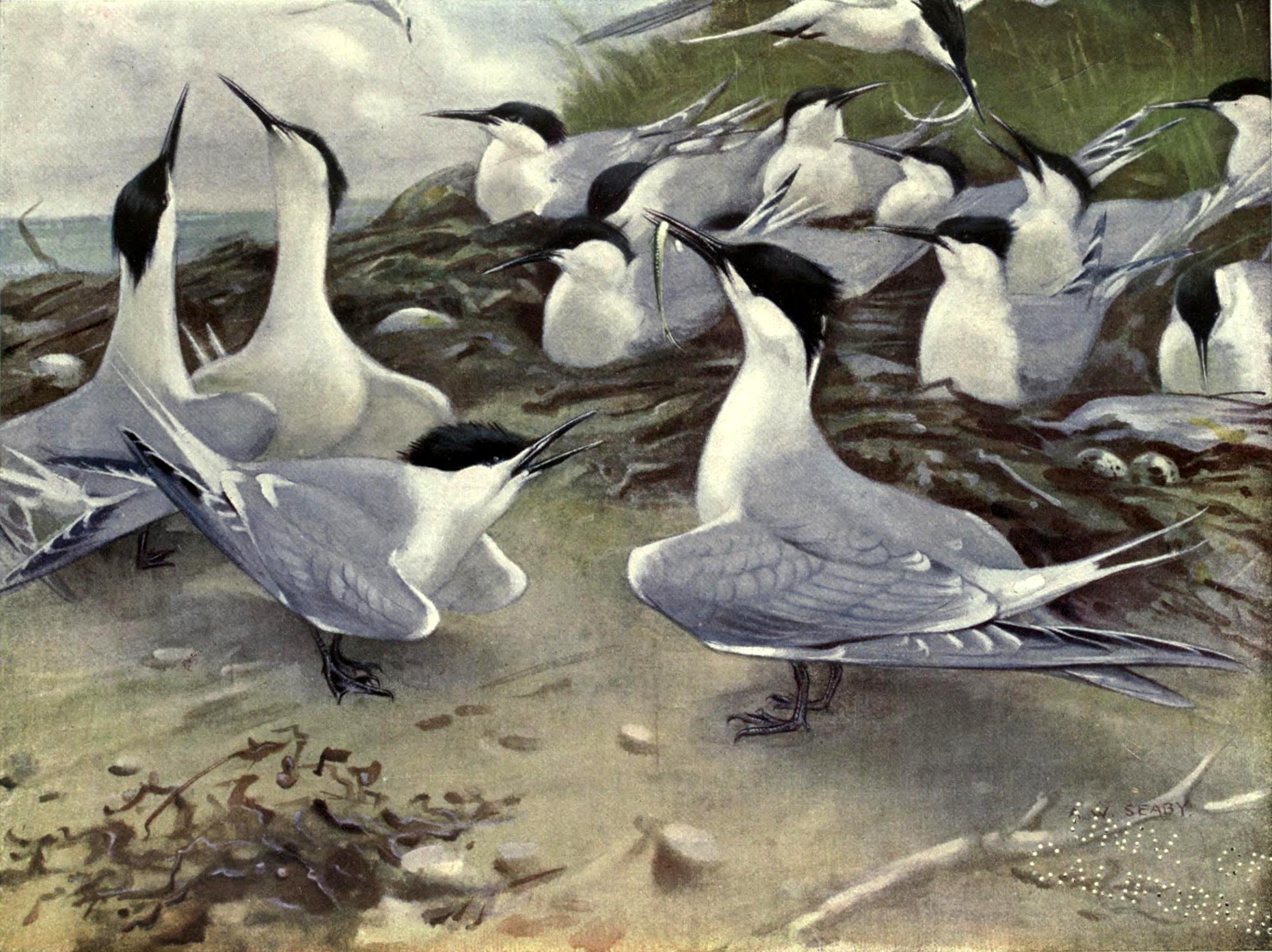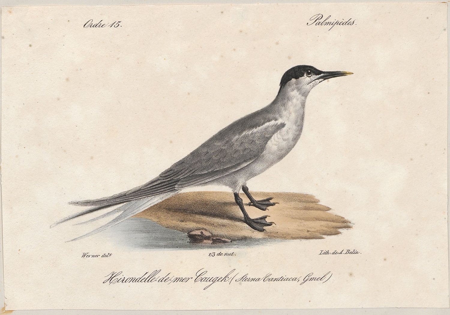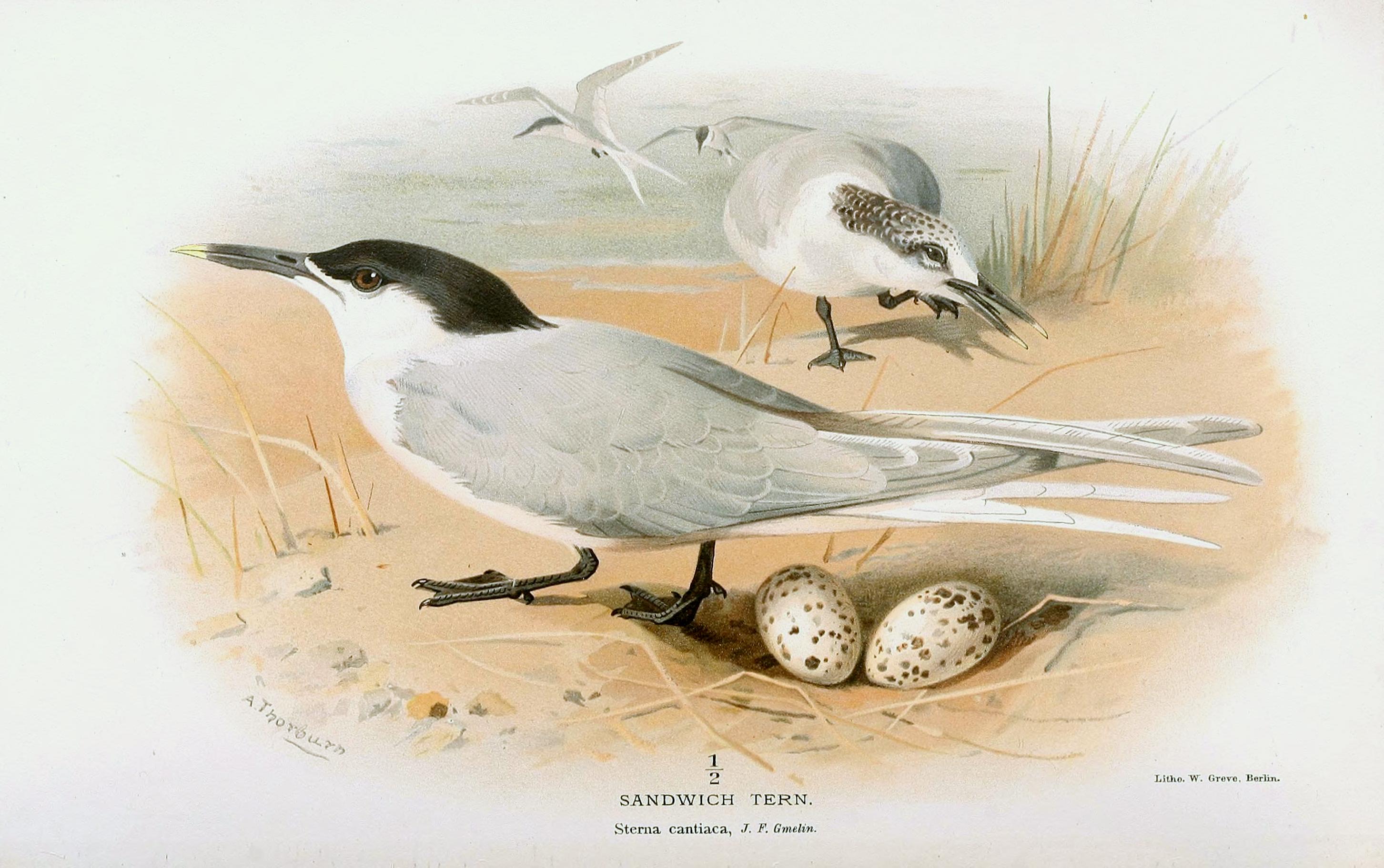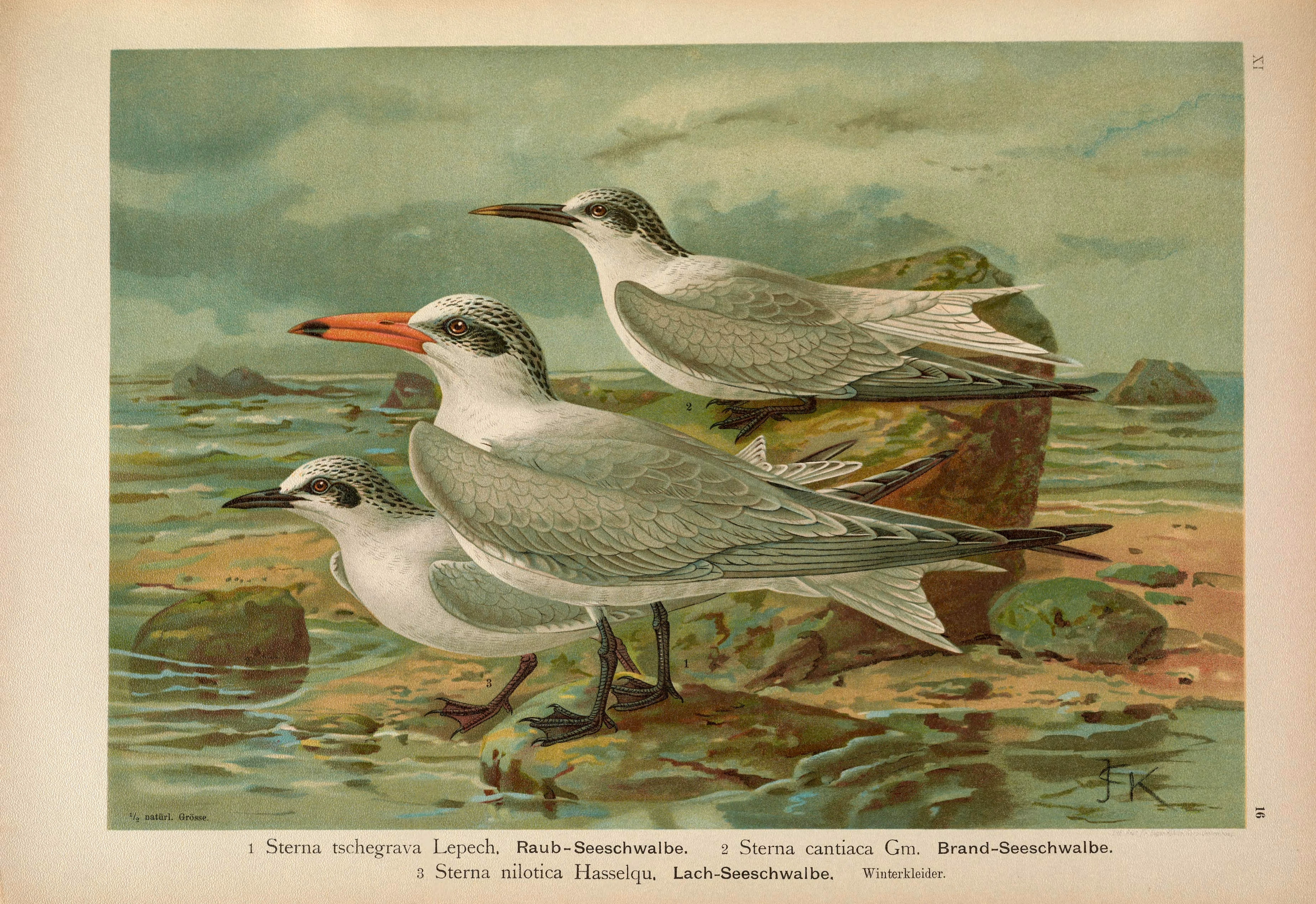 DDB), deel 31, Berlin. Origineel 1173 x 1946 px, 0.7 MB.Otto presenteerde deze soort eerst als nieuw, de Sterna stubberica. Later bedacht hij zich en zei dat het mogelijk toch om de grote stern ging. De vogel heeft zo te zien echter geen gele snavelpunt.